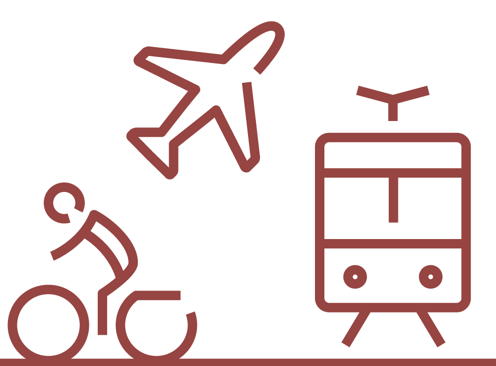 Select a center from the dropdown menu and view on the map which other centers have direct public transport connections with it and how many departures there are per day.